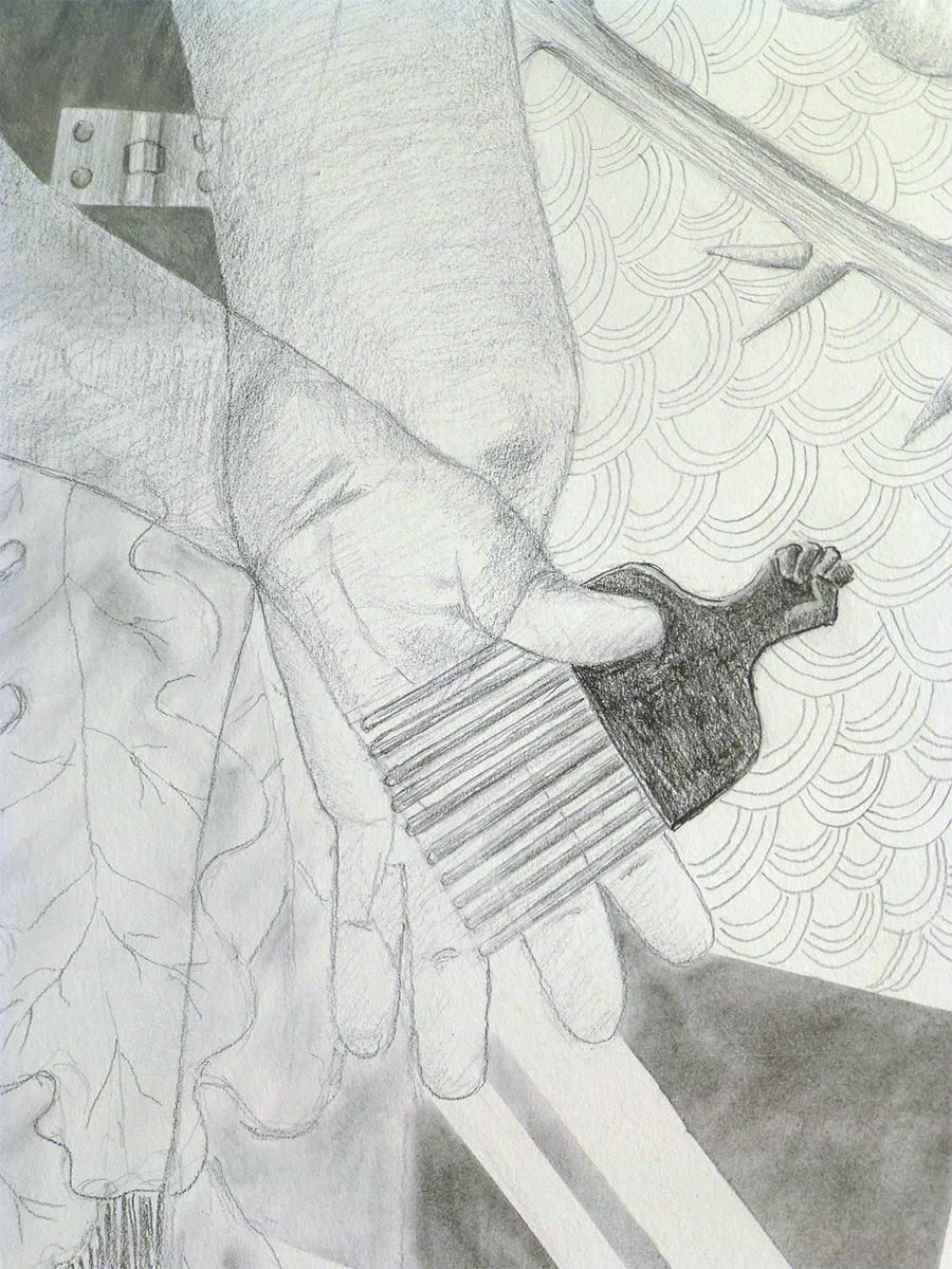 Pencil, graphite powder, silver wax, acrylic and ink on Fabriano paper – 172cm x 130 cm, 2017